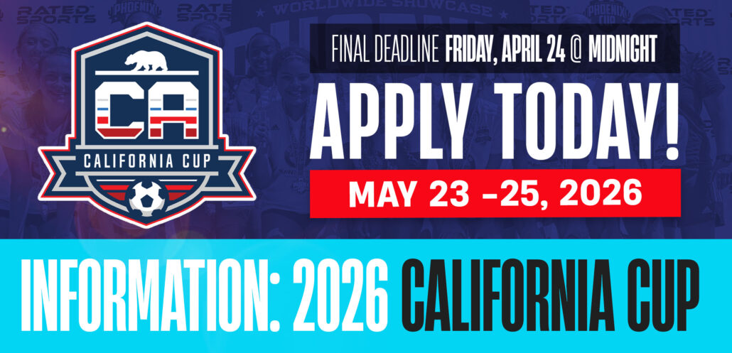 The California Cup is a championship style soccer tournament over Memorial Day weekend that will host over 200 teams ages U9 – U19 for the ultimate experience. Teams will get to enjoy the warm weather of California while playing on a sprawling 20 field complex.